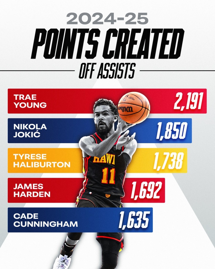 开云体育直播-上赛季助攻创造得分排行榜:特雷-杨2191分第一 美媒:给他点尊重